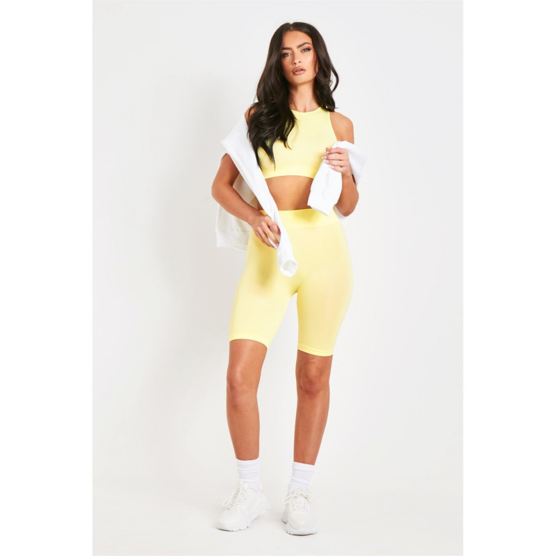 Missy Empire Seamless Cycling Shorts Лимон - Дамски къси панталони