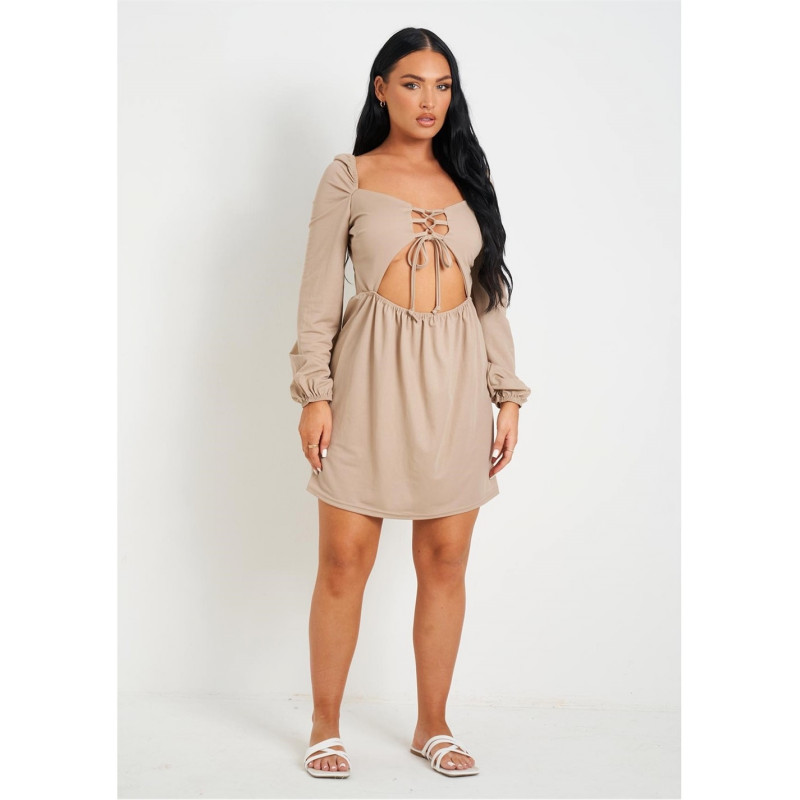 Missy Empire Up Front Cut Out Long Sleeve Dress - Дамски поли и рокли