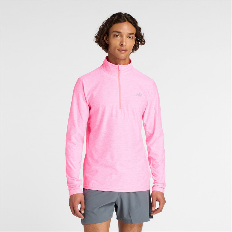 New Balance Men's Space Dye Quarter-Zip Long-Sleeve Performance Gym Top Неон Розово -