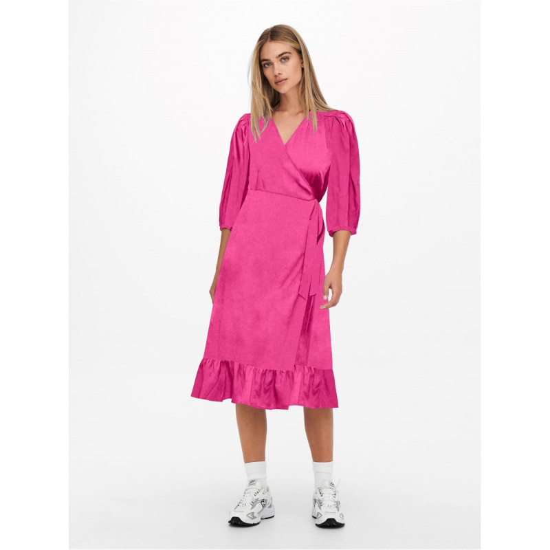 Only Olivia Wrapped Dress Womens Фуксия Лилаво - Дамски поли и рокли