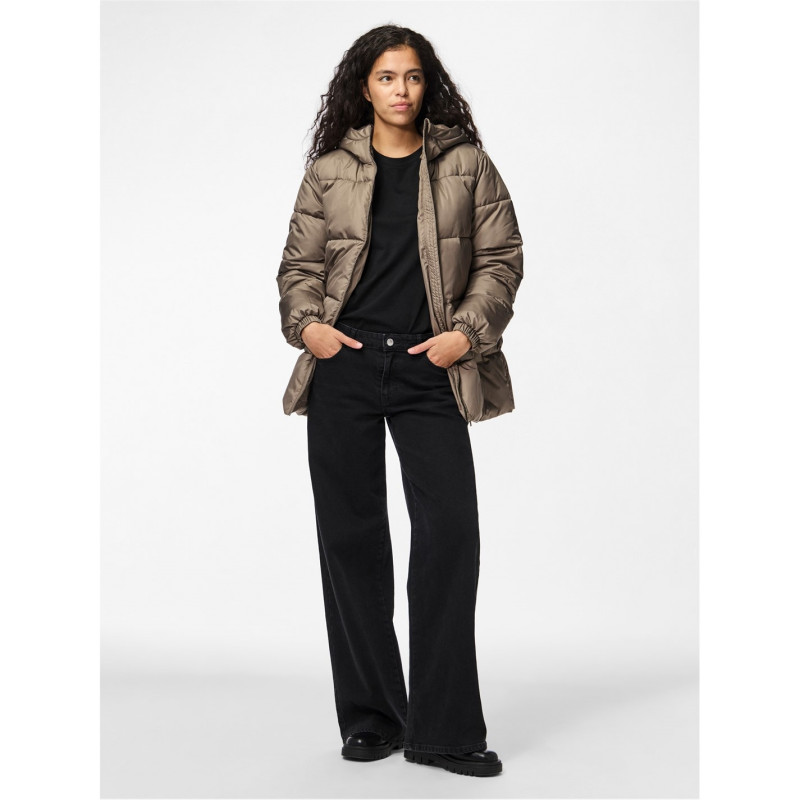 Pieces Women's Quilted Hooded Medium Puffer Jacket