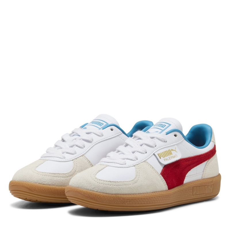 Puma Palermo Leather Jr Low-Top Trainers Boys Бяло/Червено -