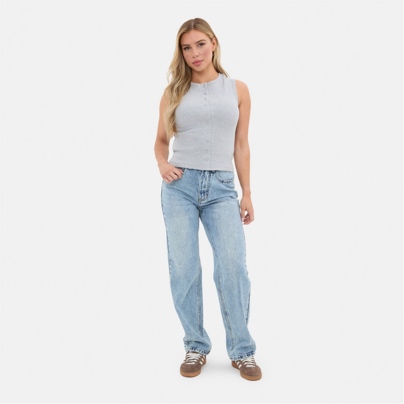 Ribbed Sleeveless Button Front Top