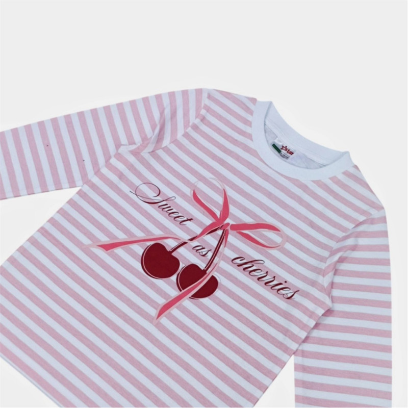 Star Kids' Cotton Long Sleeve Pyjama Set Черешова ивица -