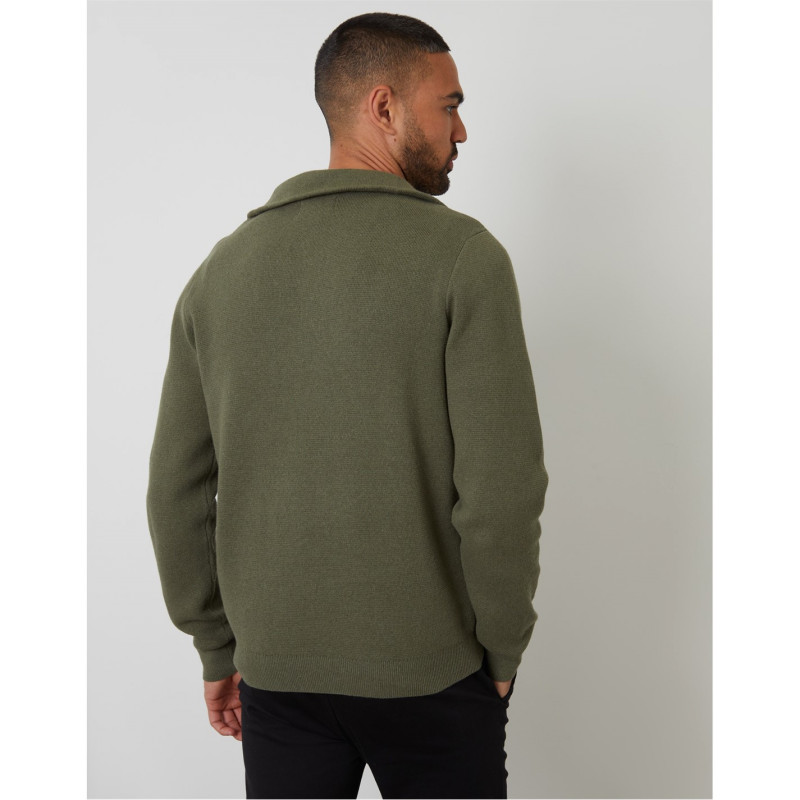 Threadbare Men's Kamrul Quarter Zip Knitted Jumper Olive -