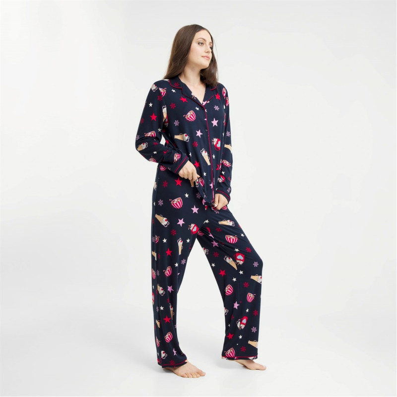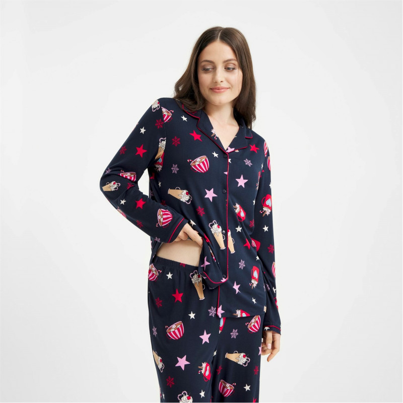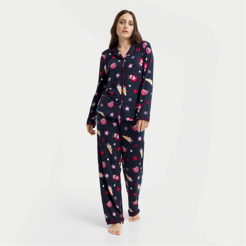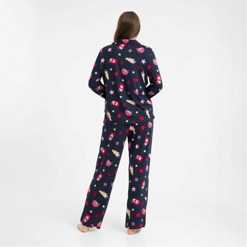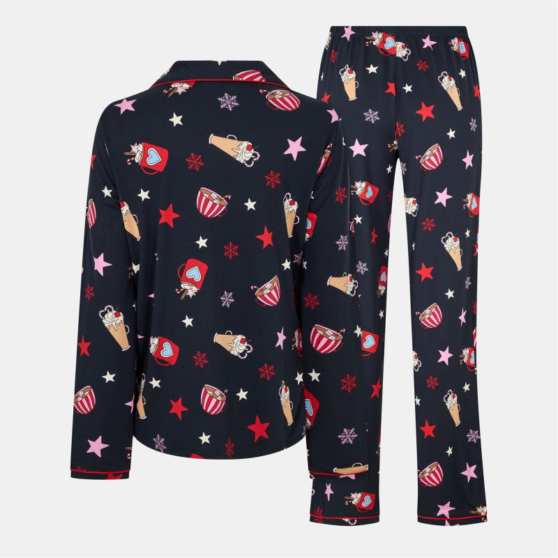 Urban Threads Women's Long-Sleeve Pyjama Set Navy Hot Choc -