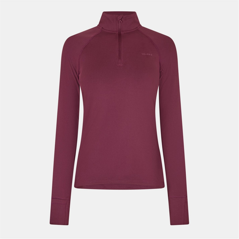 Usa Pro Long Sleeve Quarter Zip Top Womens Dark Cherry -