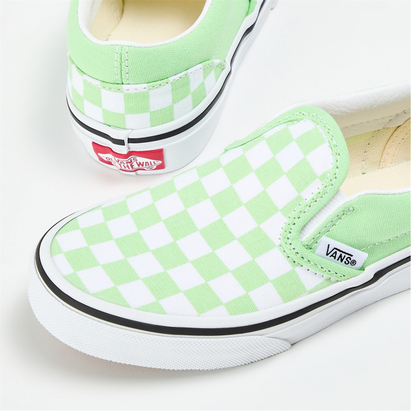 Vans Classic Slip-On Color Theory Checke Canvas Trainers Unisex Kids Pistachio Green - Детски платненки и гуменки