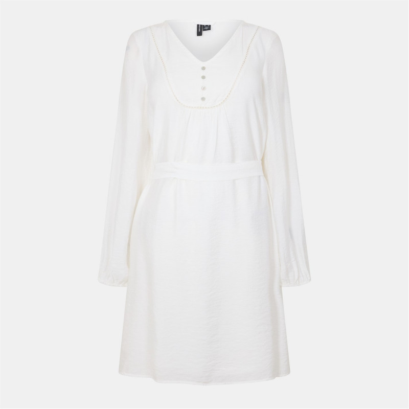 Vero Moda Mira Detl Dress Ld99 Снежана Бяла - Дамски поли и рокли