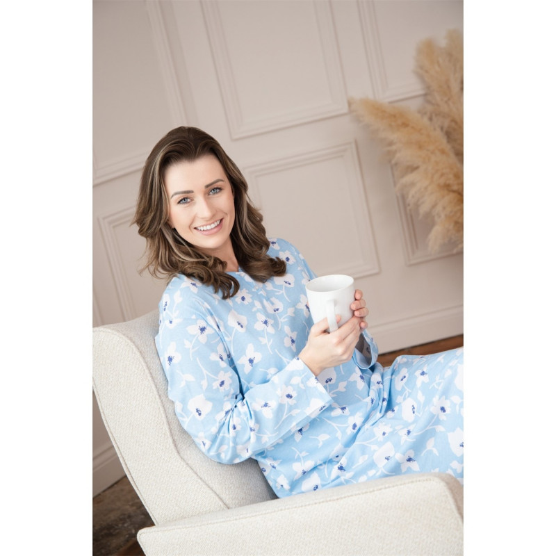 Womens 100% Organic Cotton Long Sleeve Nightdress Lt Blue Floral -